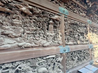 境内に入ると、迫力ある木彫りの彫刻が目を引き、細部まで丁寧に彫られた作品に思わず見入ってしまいました。