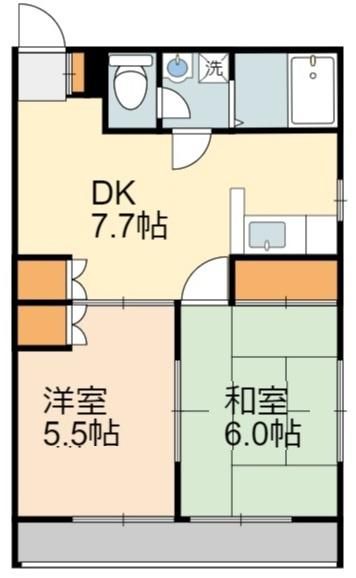 | 築年月 | 1989年11月 | 間取り | 2DK( LDK7.7畳/洋室5.5畳/和室6畳 ) | 専有面積 | 42.21m2 |
